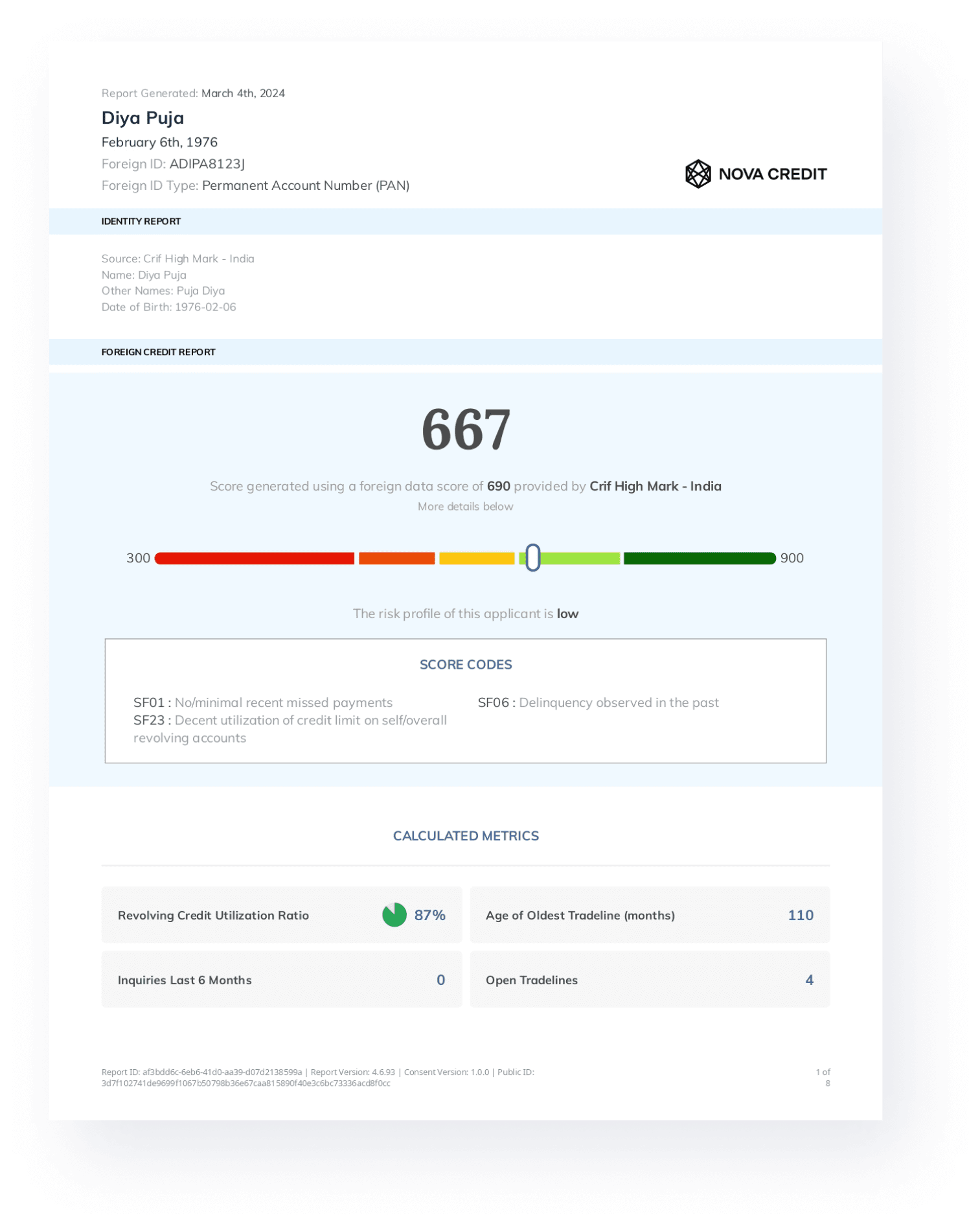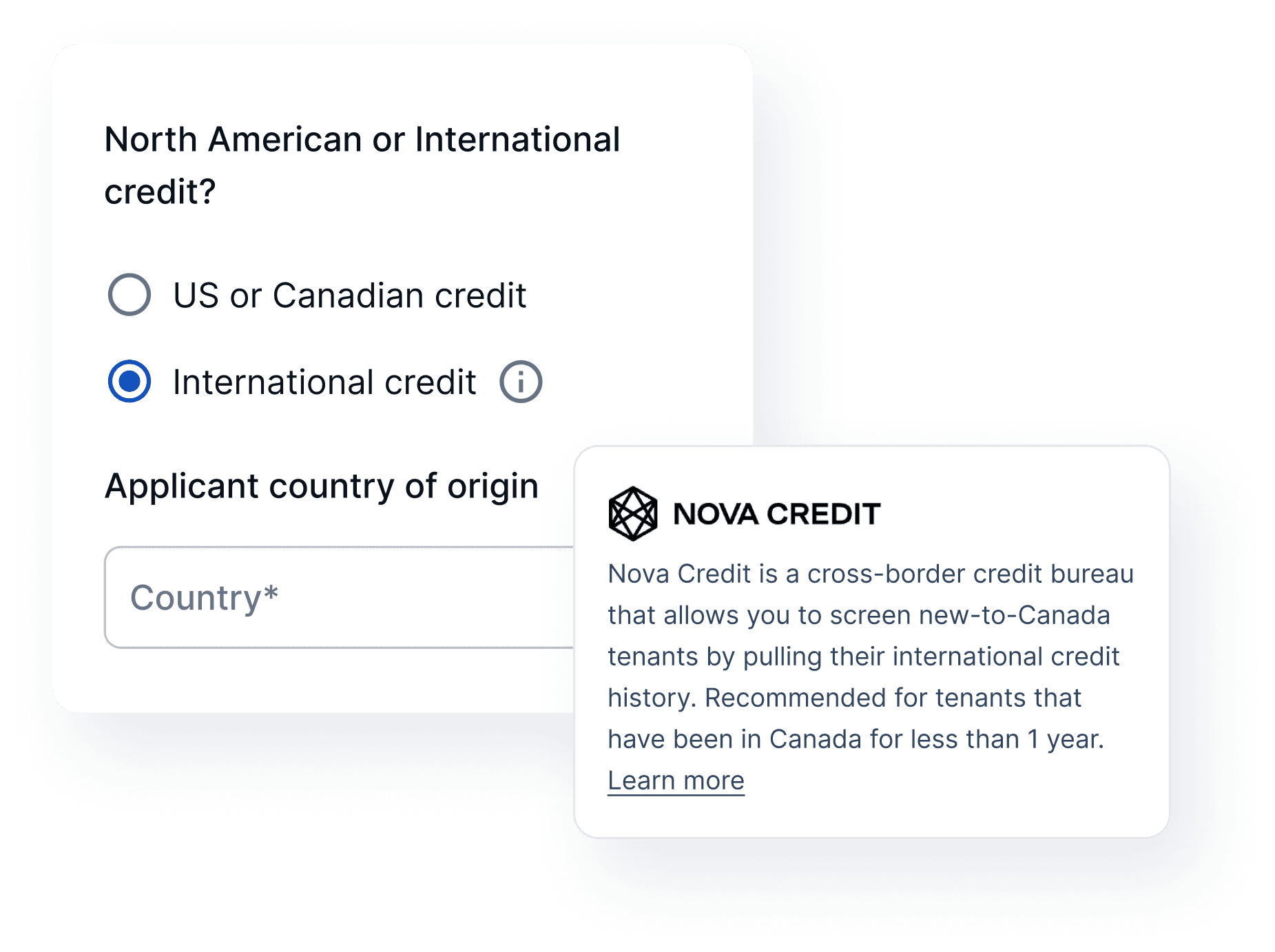 We’ve partnered with Nova Credit to unlock credit history data from over 1.5 billion credit profiles worldwide and provide credit reports for tenants across the globe.