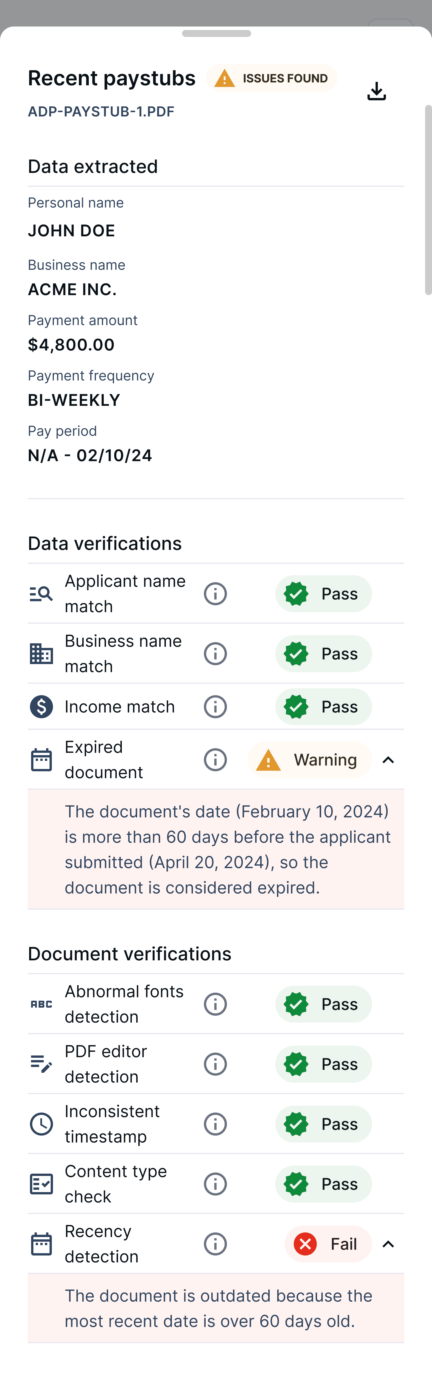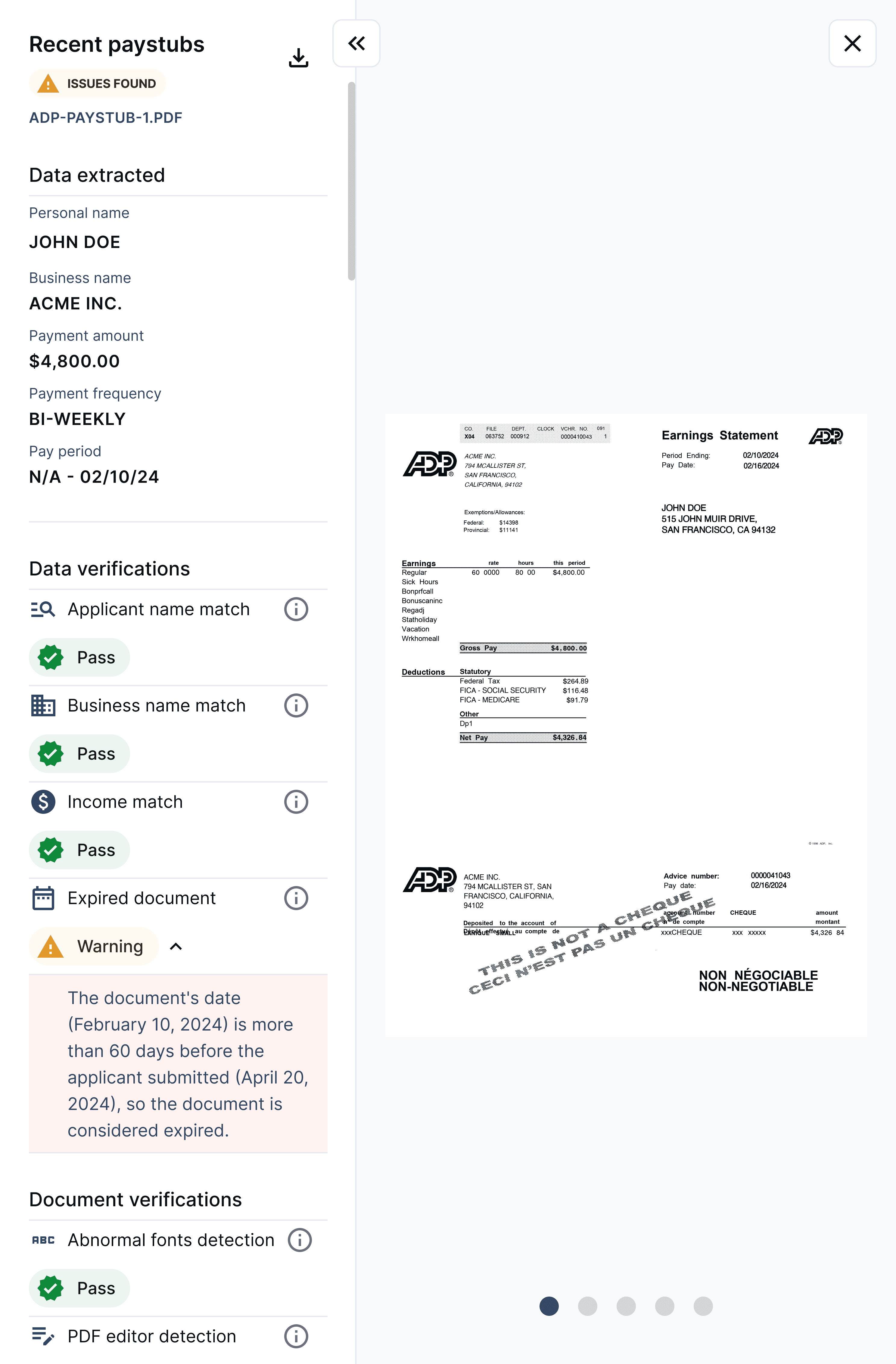 AI-powered scan of income documents to detect signs of tampering or fraud
