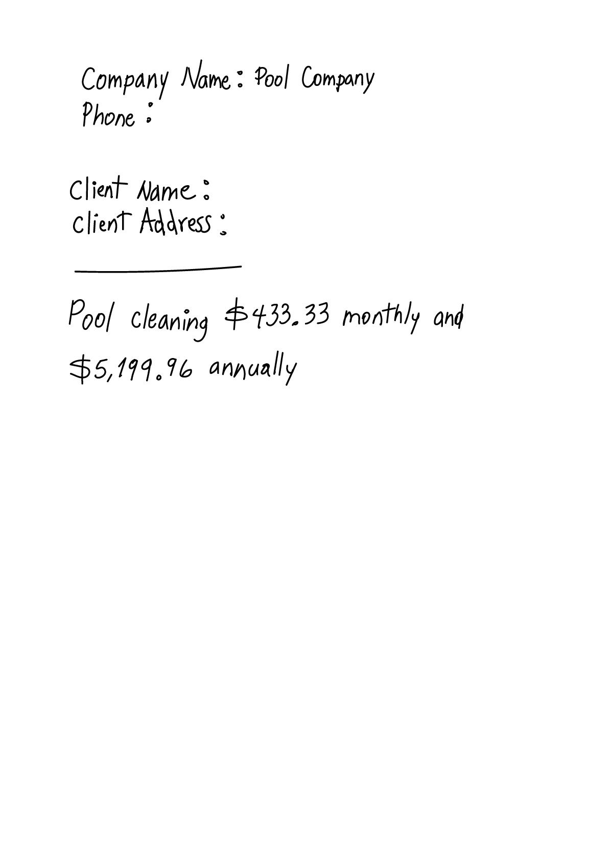 - Frequency of services (weekly, bi-weekly, monthly, annually)