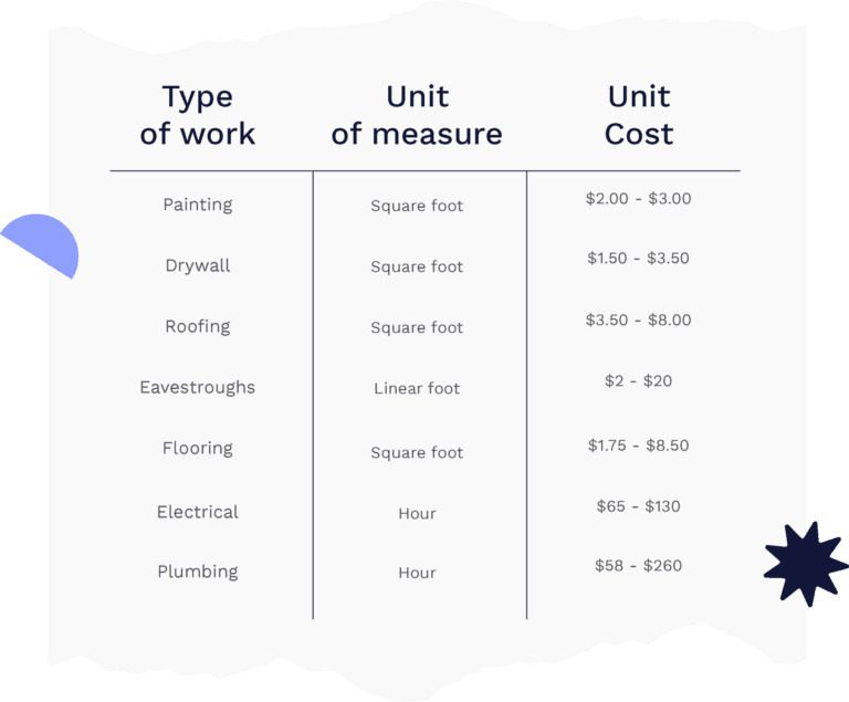 Each aspect of a renovation requires work from different trades, all of which account for the cost of materials they use in a particular way. It’s useful to know how they derive their costs so you know if you’re getting a favourable deal.