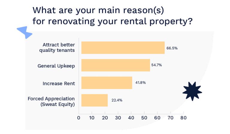 Nearly 67% of landlords said they primarily renovate their rentals to attract higher-quality tenants. This result isn’t surprising, as one of the keys to a profitable rental business is finding and retaining renters who pay timely rent and keep the property neat and clean.