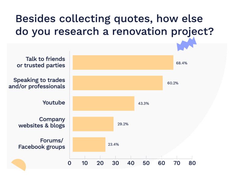 Over 68% of respondents replied that they seek the advice of friends or people they trust to provide helpful advice on their renovation plans. A similar percentage said they also consult with a tradesperson or another professional to gain further knowledge about how to approach their renovation project.