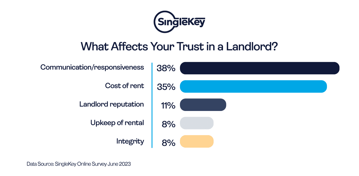 - In a SingleKey survey, 38% of tenants felt that a landlord’s ability to be responsive and communicative had the most significant impact on their outlook.