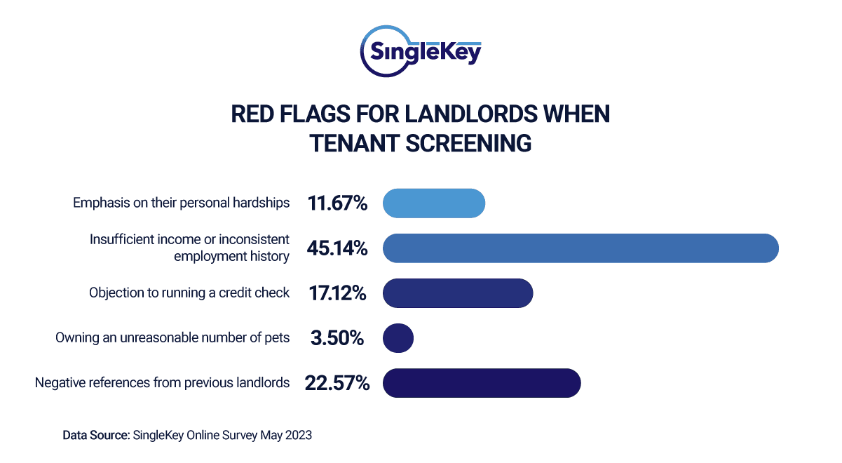 - According to a recent survey, the biggest red flag for landlords is an insufficient income or an unstable employment history.