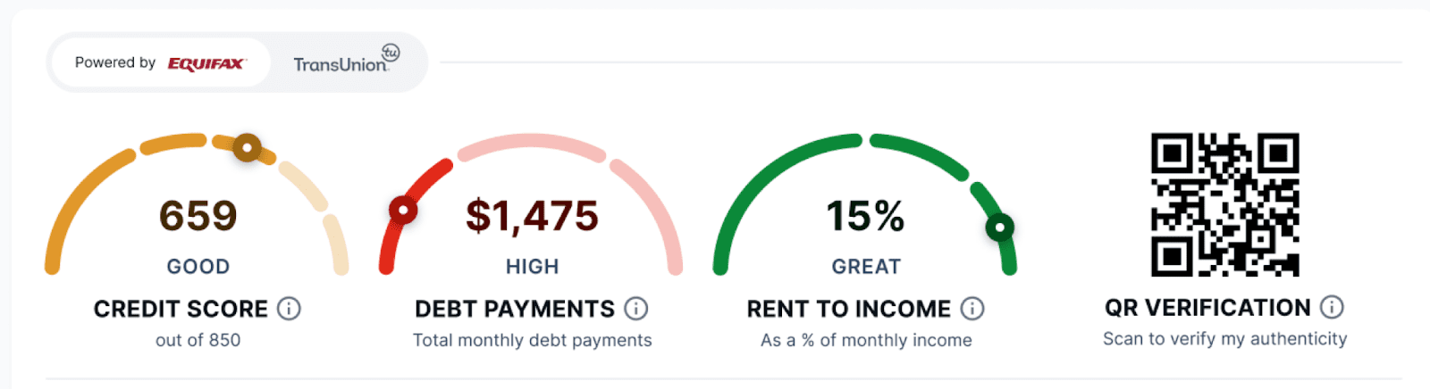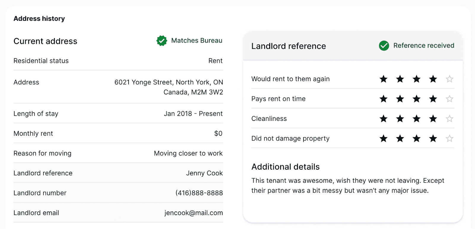 A green checkmark with “Matches Bureau” in this section means that the rental address matches the reported address from the credit bureau. This gives you a high degree of confidence that the address provided by the applicant is accurate.