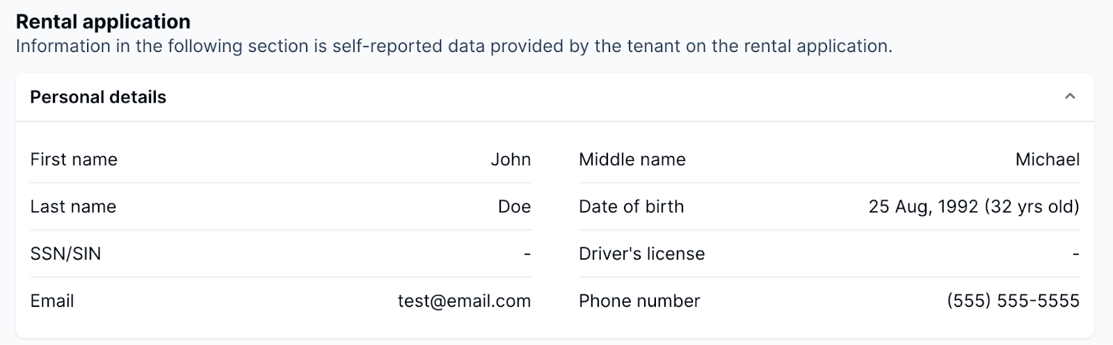 This part of the Tenant Screening Report is the actual rental application form that the tenant has filled out. This information comes directly from the applicant.