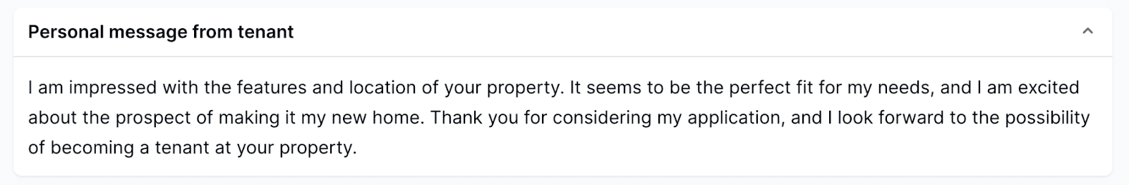 Personal message from the tenant