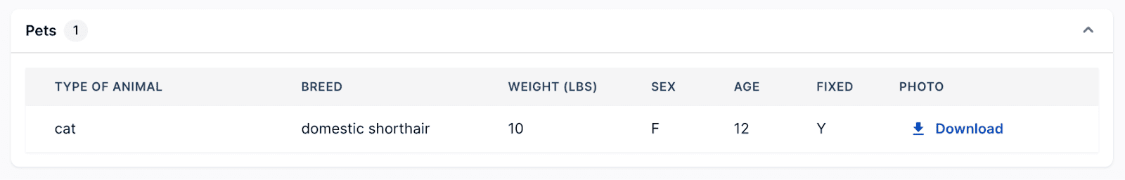 Here, you’ll find details of any pets who will live with the applicant in the rental, such as the animal type, breed, and weight.