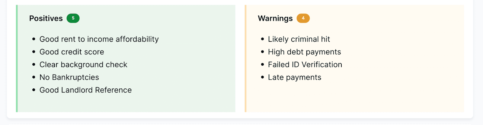 Here, you’ll find a summary of the report’s key findings about the applicant, both positive and negative. You can use these facts to assess their suitability as a tenant quickly and see what areas require further investigation.