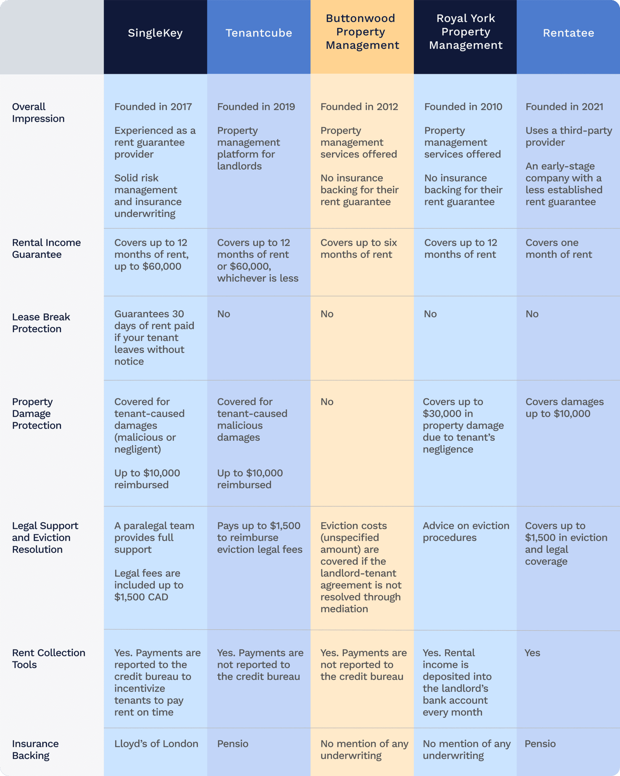 Choosing a rent guarantee program that fits your needs is essential to ensure your success as a landlord. Here’s a side-by-side comparison of rent guarantee programs provided by SingleKey and its competitors.