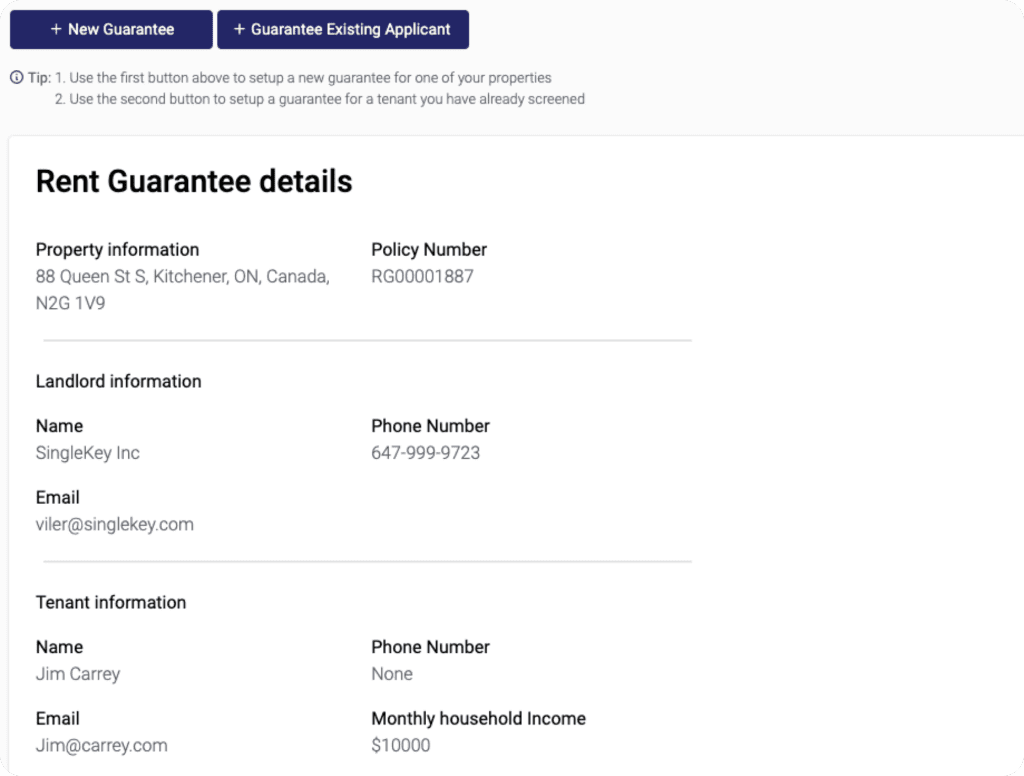 SingleKey Rent Guarantee Customer